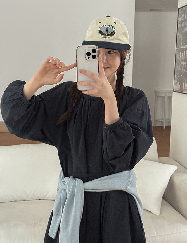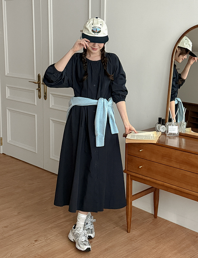 파넬리 寬鬆 皺摺 長款 洋裝 86484