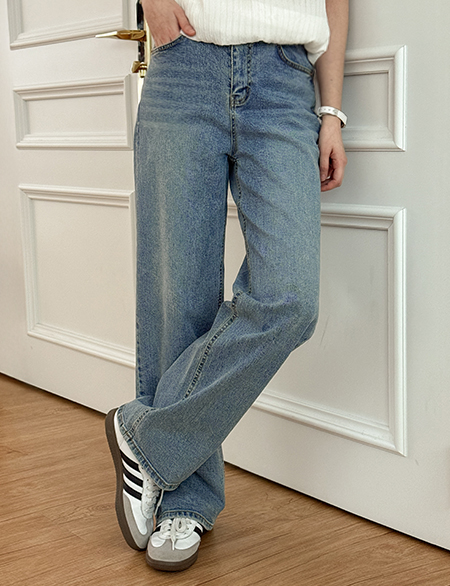토프 속밴딩 寬 牛仔 褲 86684