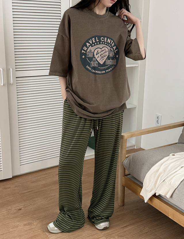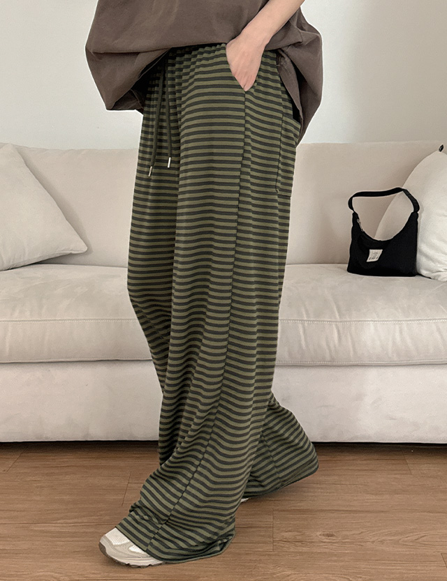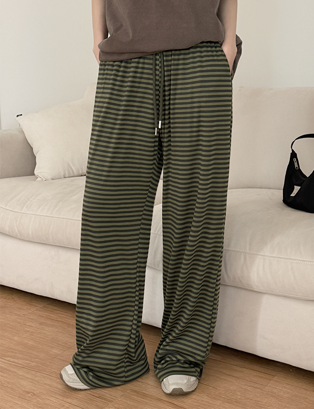 컬러링 條紋 寬 鬆緊腰 褲 86786