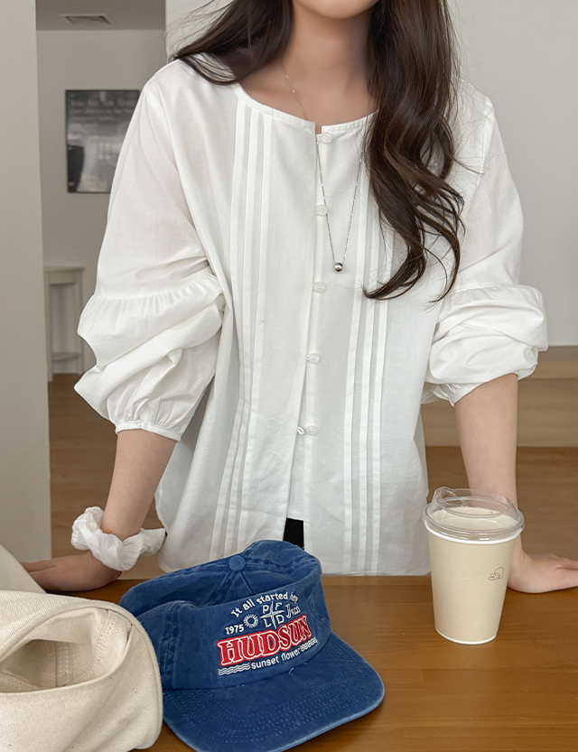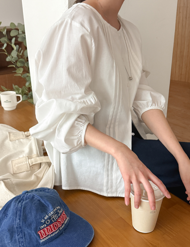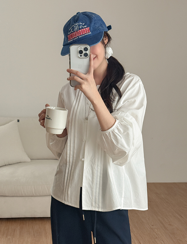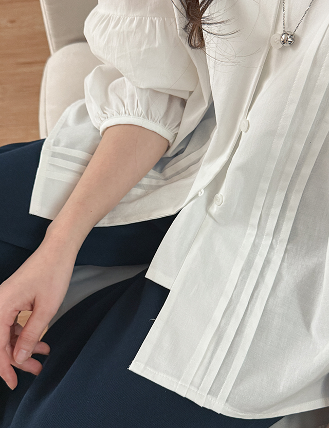 에브린 可愛 打摺 泡泡袖 襯衫 86670
