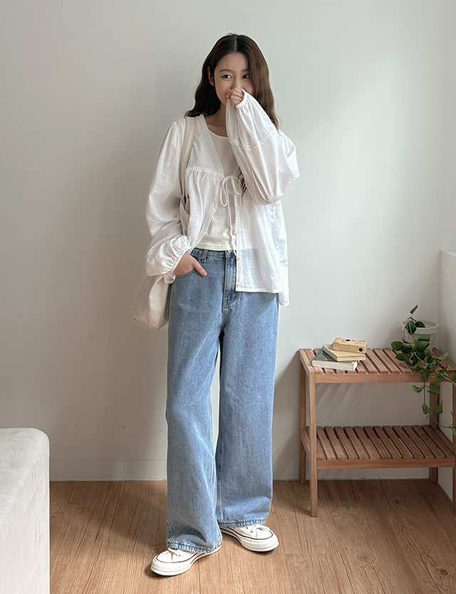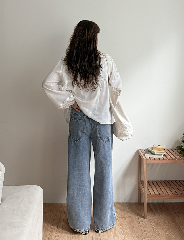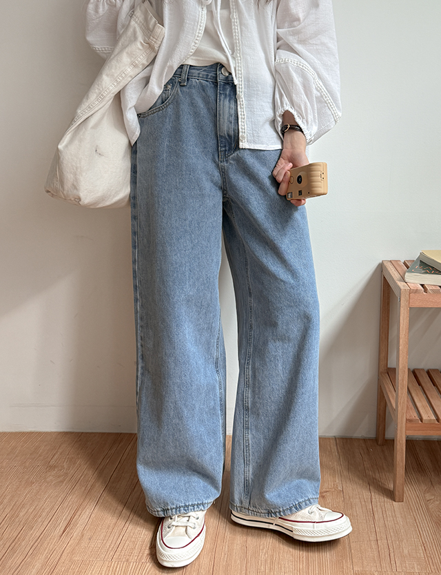 [3가지기장] 테론 속밴딩 寬 牛仔 褲 86734