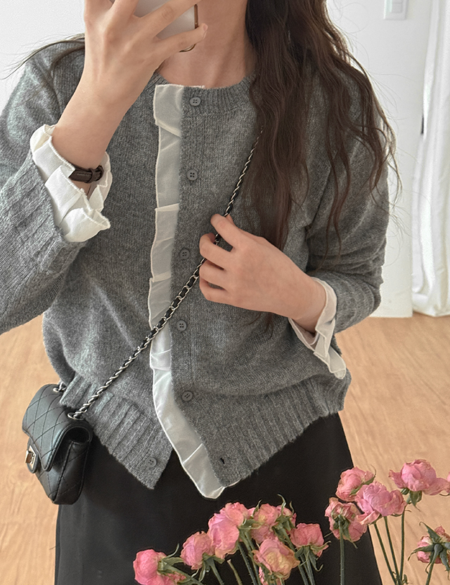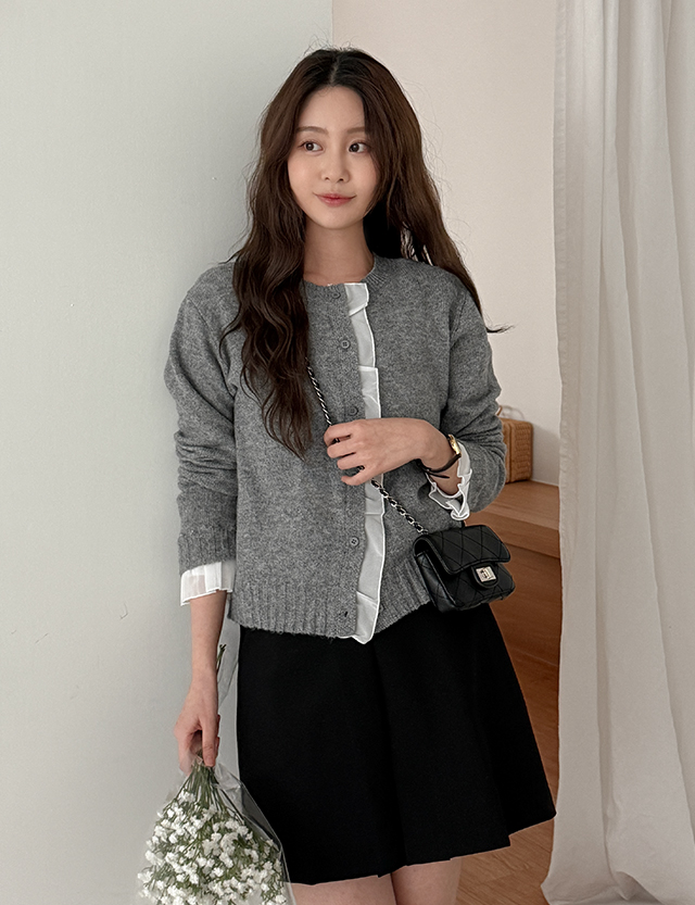 褶皺 關鍵點 配色 針織 開襟外套 86741
