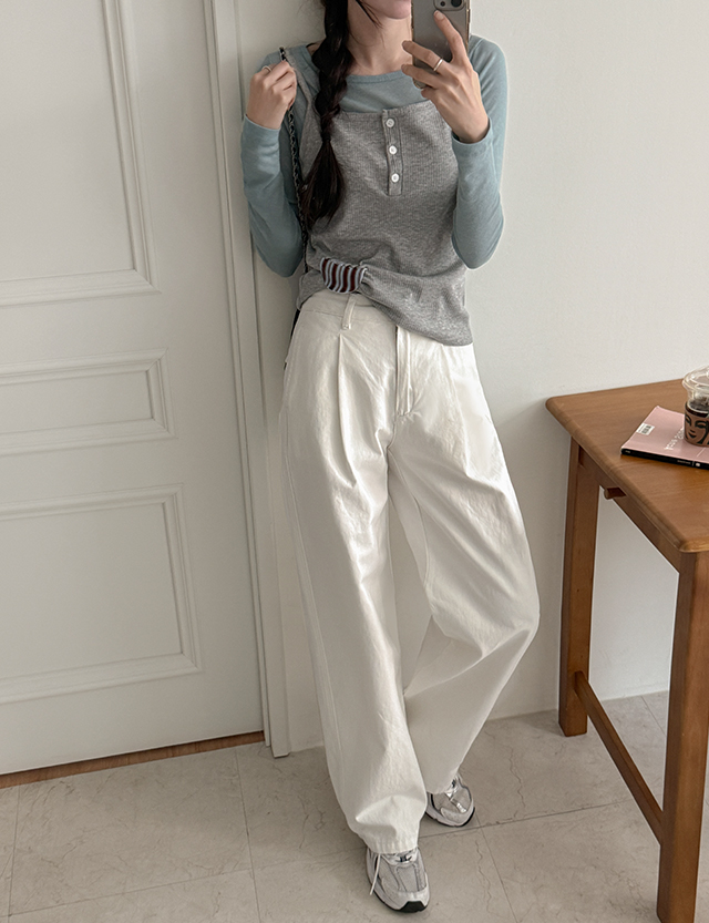 [2가지기장] 포레아 사이드 절개 棉質 세미 寬褲 86799