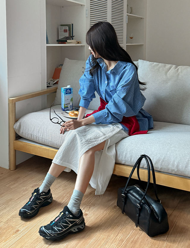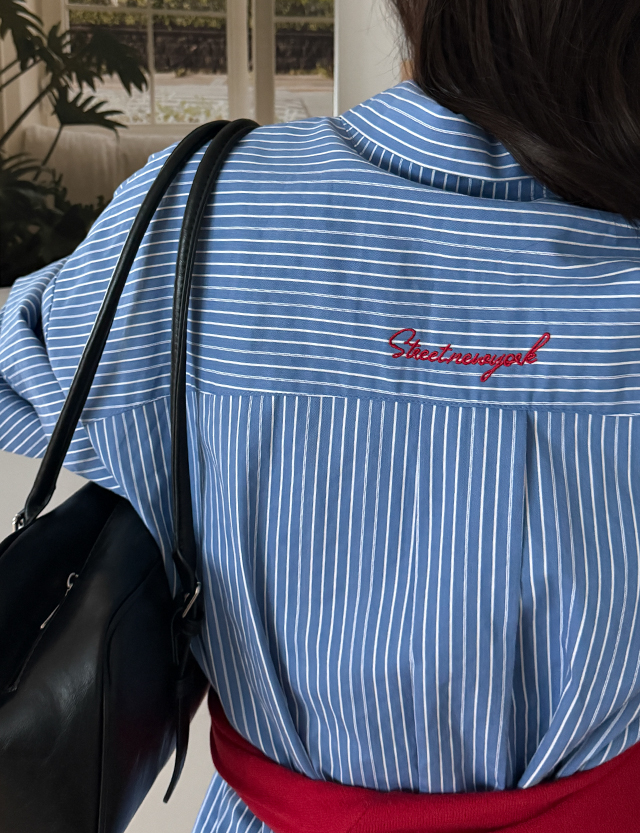 카미 條紋 字母印花 寬鬆 襯衫 86650