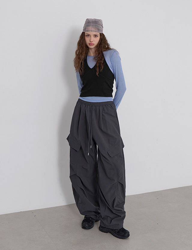 카이프 바스락 工裝褲 鬆緊腰 커브 蓬蓬裙 褲 86354