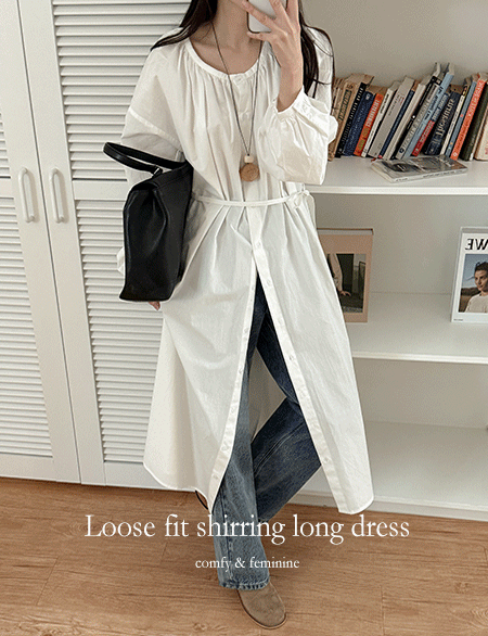파넬리 寬鬆 皺摺 長款 洋裝 86484
