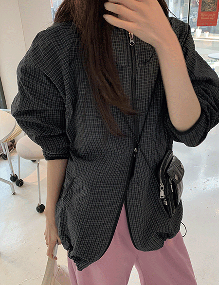 라이닝 체크패턴 2WAY 衛衣 윈드 拉鏈外套 86804