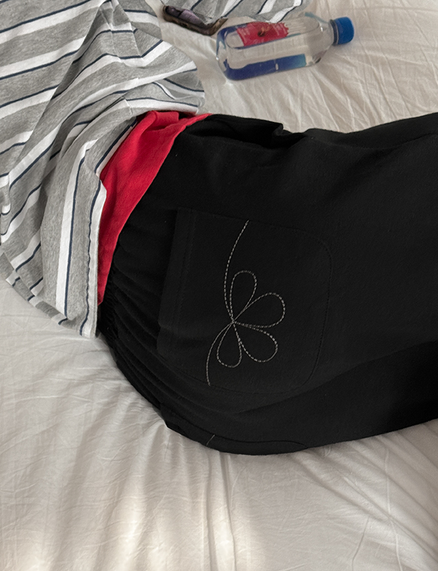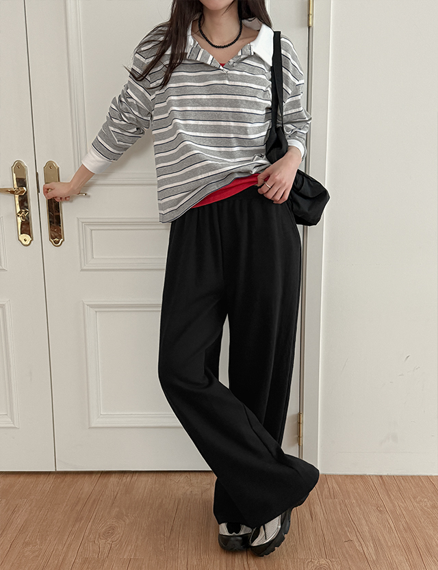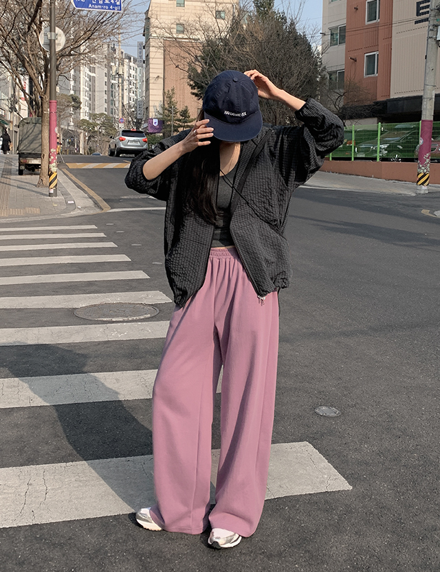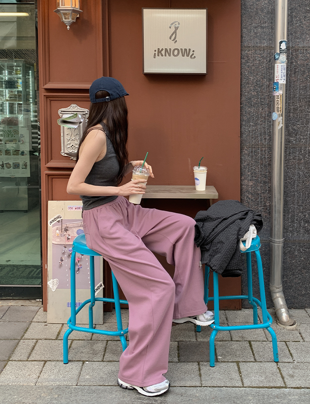 허슈빌 포켓 刺繡 세미와이드 鬆緊腰 褲 86803