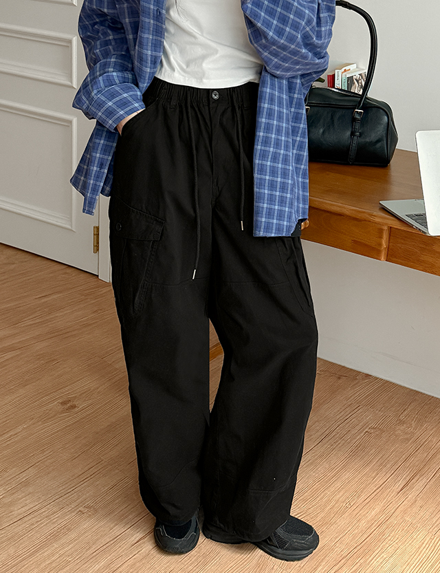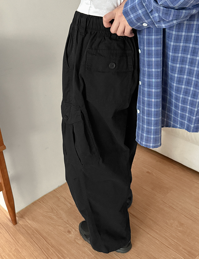 루샌 鬆緊腰 2WAY 寬 束腳褲 工裝褲 褲 86712