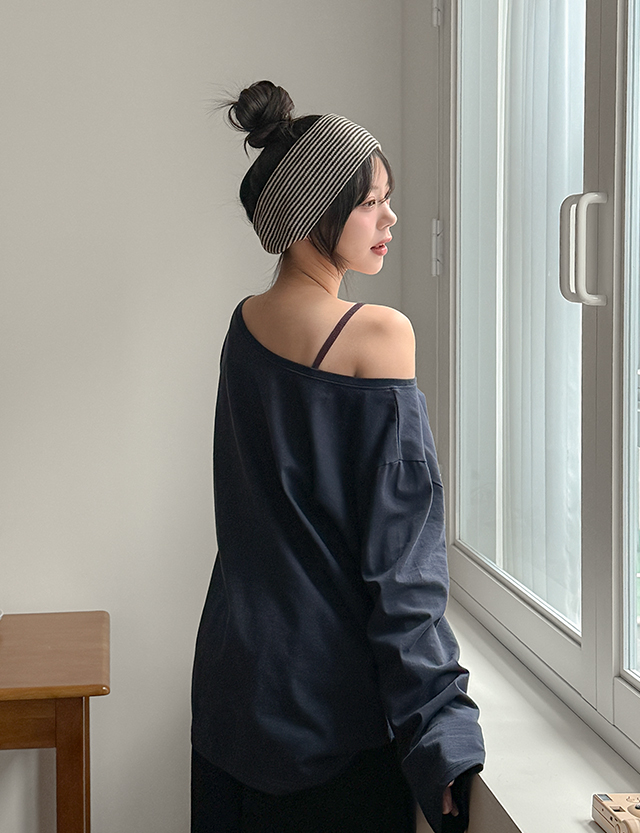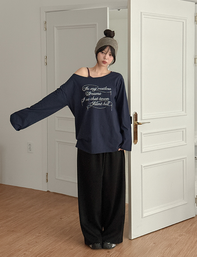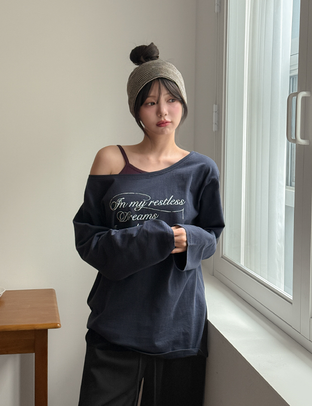 로켄 字母印花 오프 長袖 T恤 86763