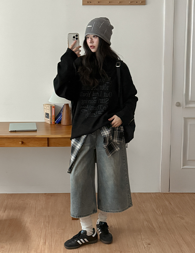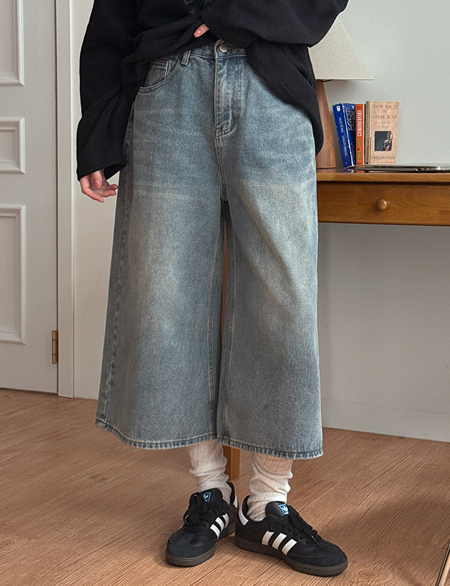센셔 復古/仿舊 버뮤다 牛仔 褲 86857