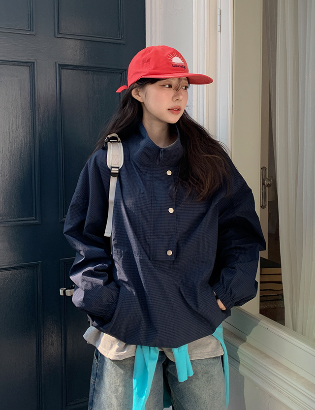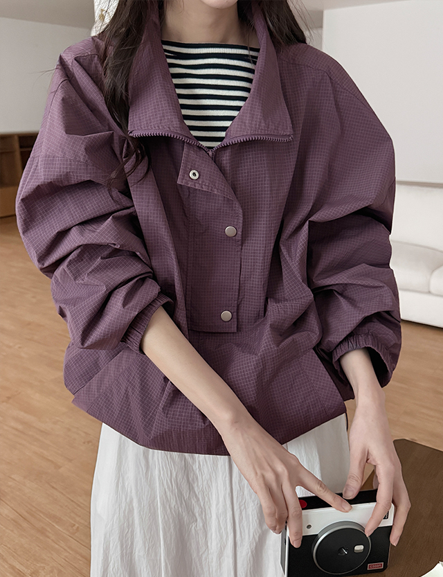 하이즌 格紋 리얼루즈핏 나일론 아노락 拉鏈外套 86497