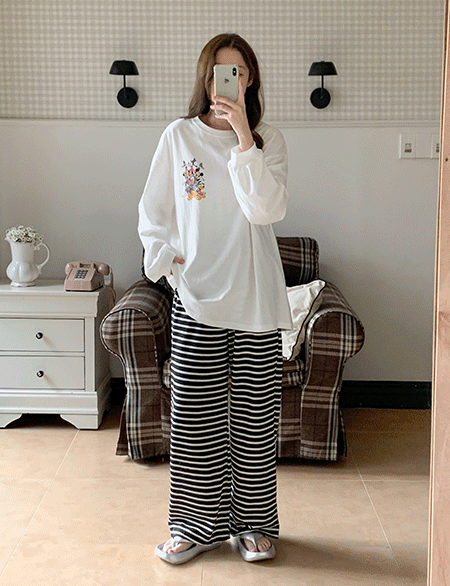 클릿드 鬆緊腰 條紋 寬褲 86947