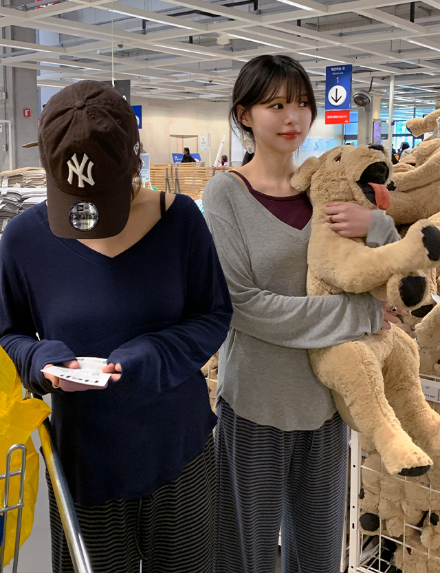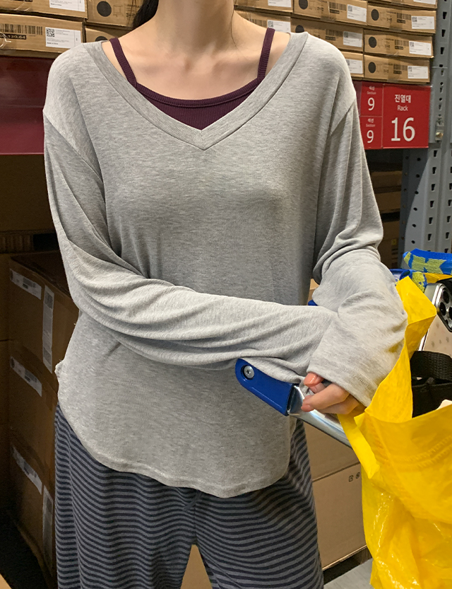 찹쌀모찌 V領 여리핏 長袖 T恤 86930