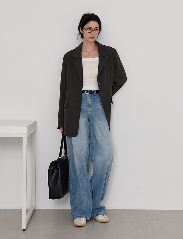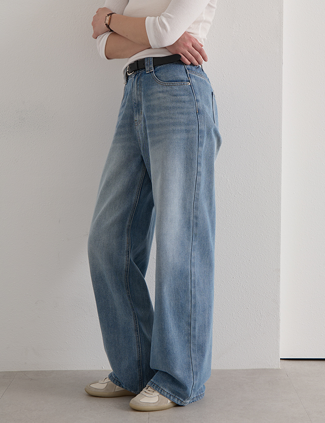 그라운미 水洗 鬆緊腰 寬 牛仔 褲 86571