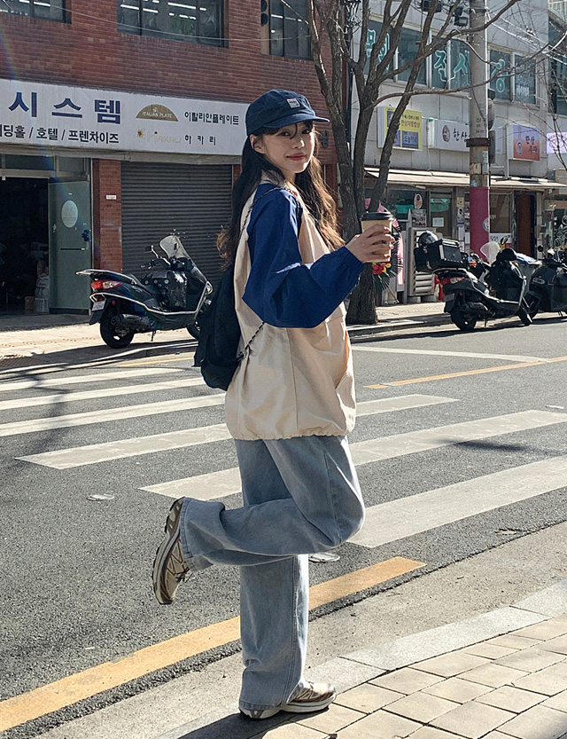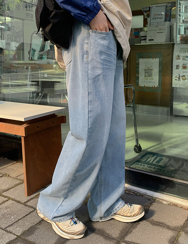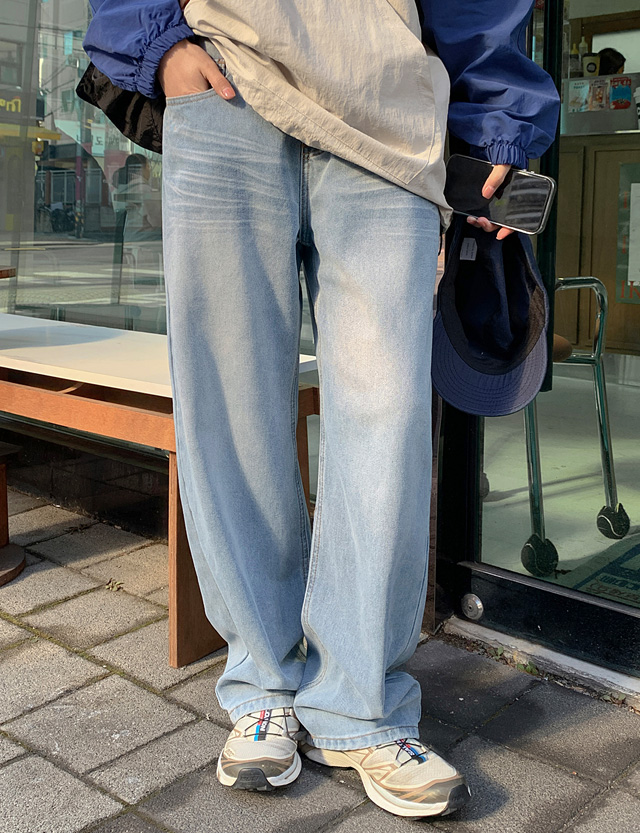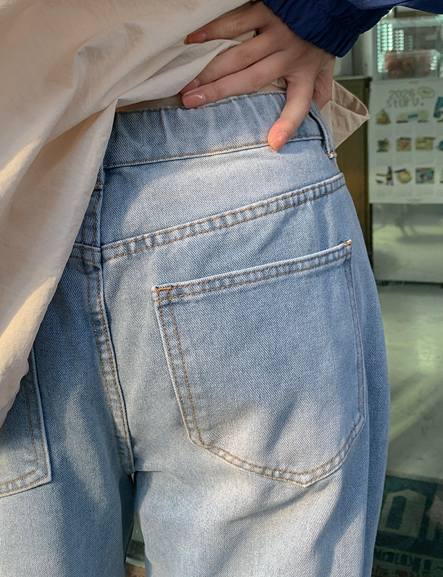 [5XL까지] 휘트엔 캣워싱 세미 寬 속밴딩 牛仔 褲 86982