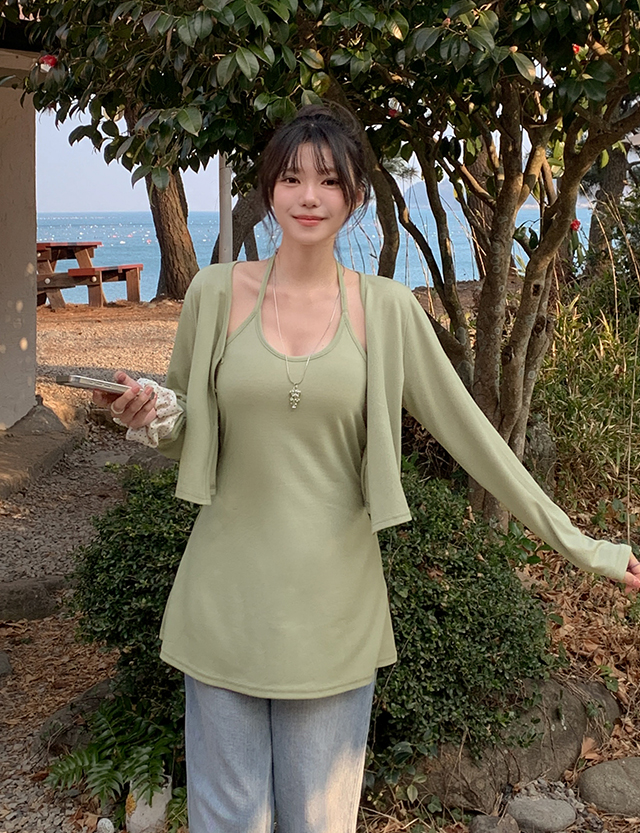 여리여리핏 掛頸 波浪群/喇叭裙 背心 開襟外套 套裝 87029