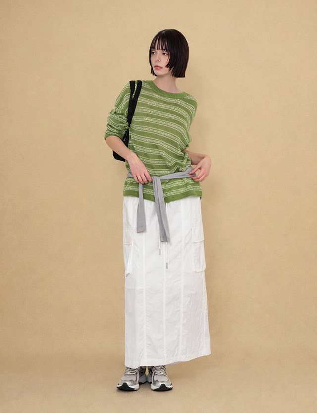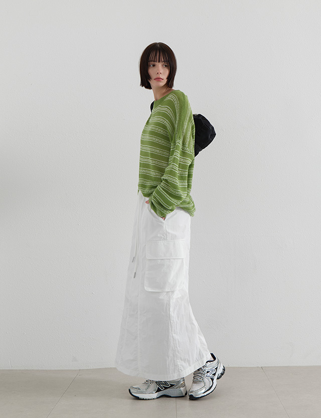 러슬 바스락 工裝褲 鬆緊腰 長裙 86467