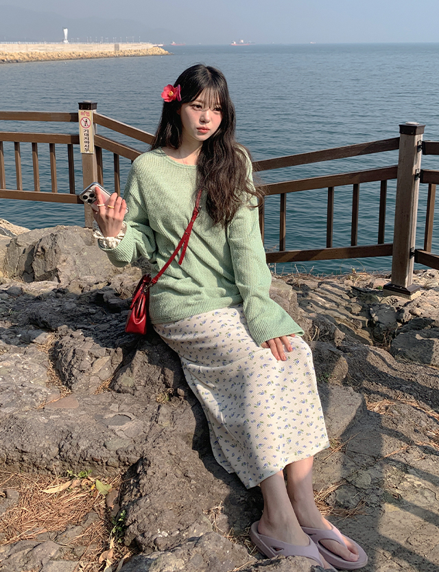 포피 碎花 鬆緊腰 長裙 87037