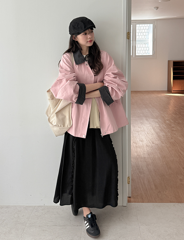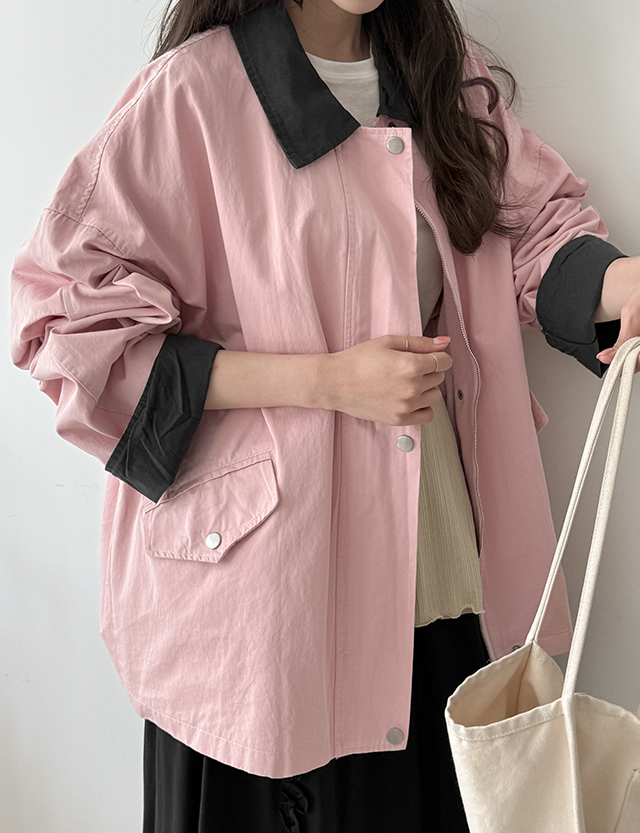 베스틴 配色 領口 綁帶 寬鬆 外套 87107