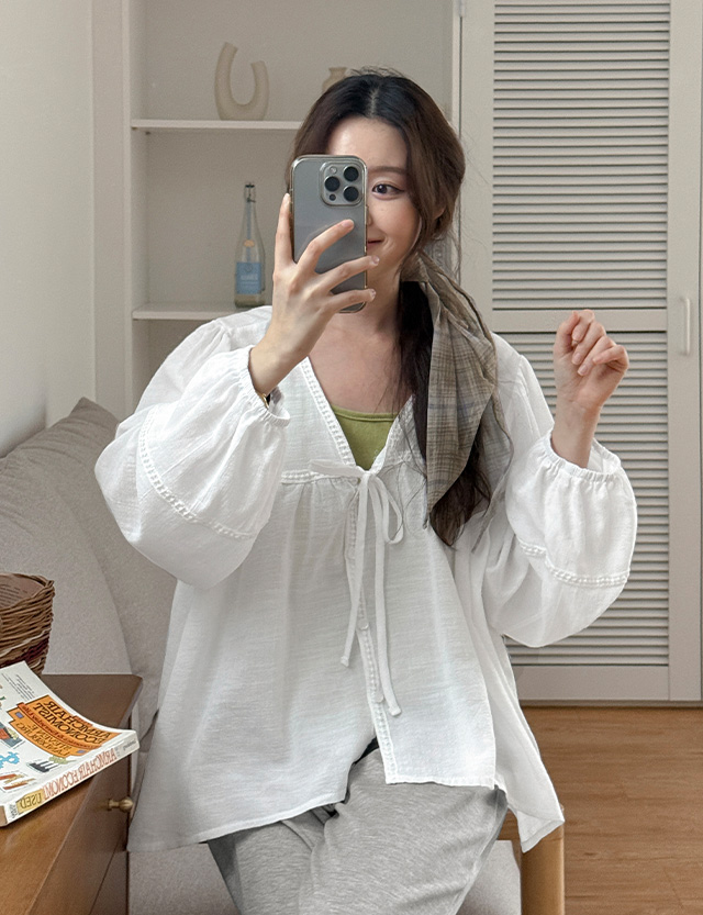 여리한 빈티지무드 泡泡袖 不規則 襯衫 86739