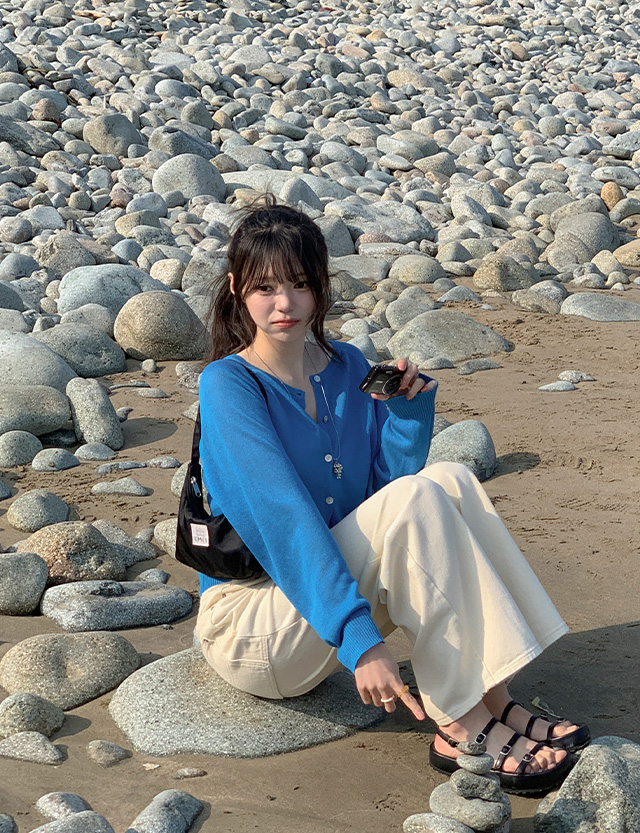 森林綠色 插肩 寬鬆 針織 開襟外套 87031