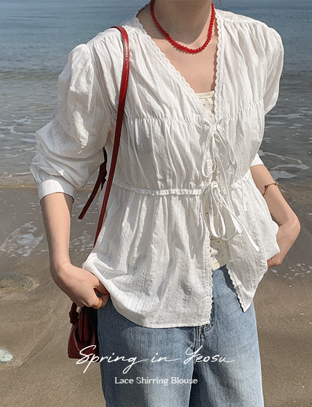 로이티 蕾絲 皺摺 襯衫 86984