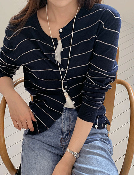[09초이스] 옷장 속 日常款 條紋 圓領 開襟外套 86714