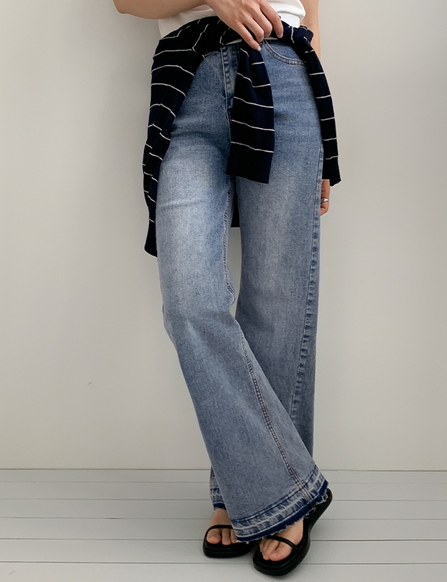 [2가지기장] 쉐입 밑단 關鍵點 속밴딩 牛仔 喇叭 褲 87016
