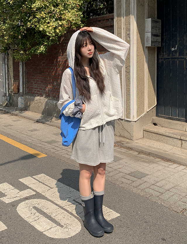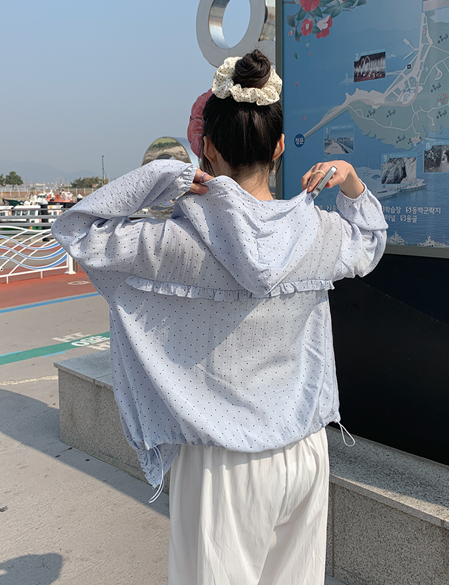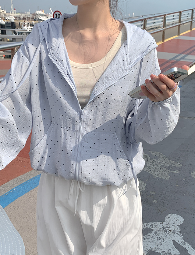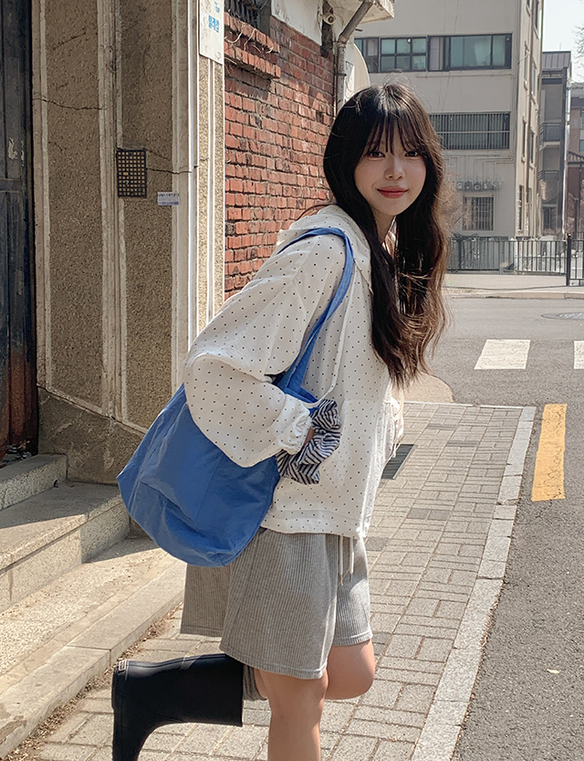 러비테 寬鬆 圓點 褶皺 棉麻 衛衣 拉鍊衛衣 87036