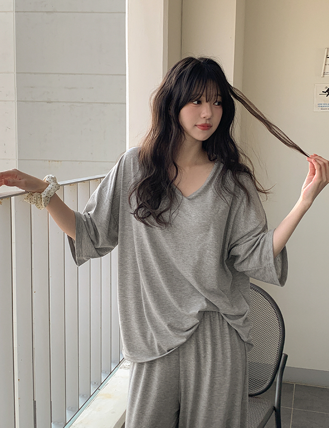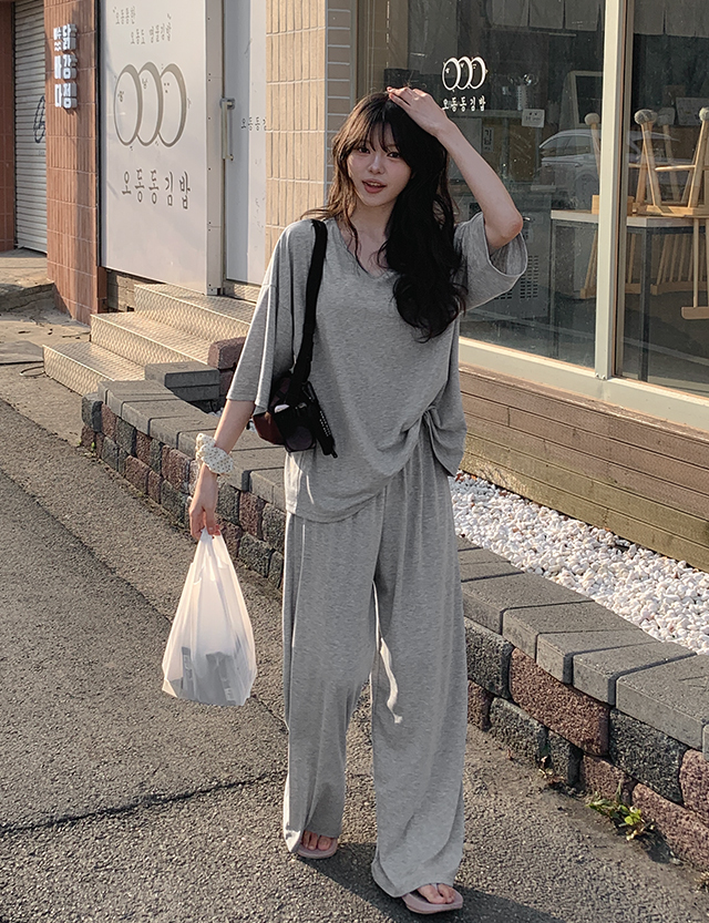 오늘도 편안하게 寬鬆 T恤&鬆緊腰 褲 套裝 87039