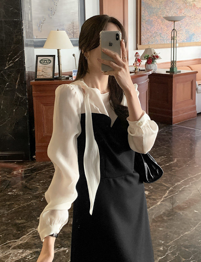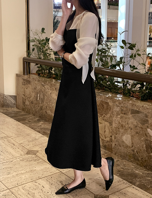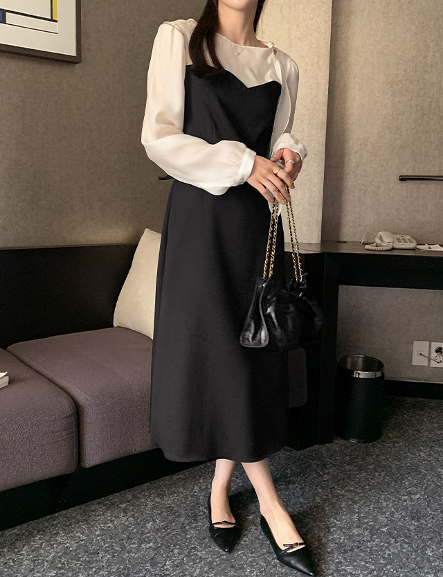 로레트 心型領 分層 A線條 長款 洋裝 87195