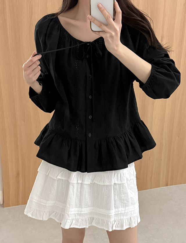 일레틴 印花 蕾絲 皺摺 襯衫 87211