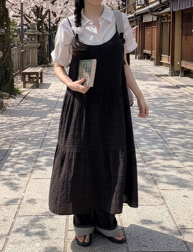 류이샤 格紋 뷔스티에 長款 洋裝 86991