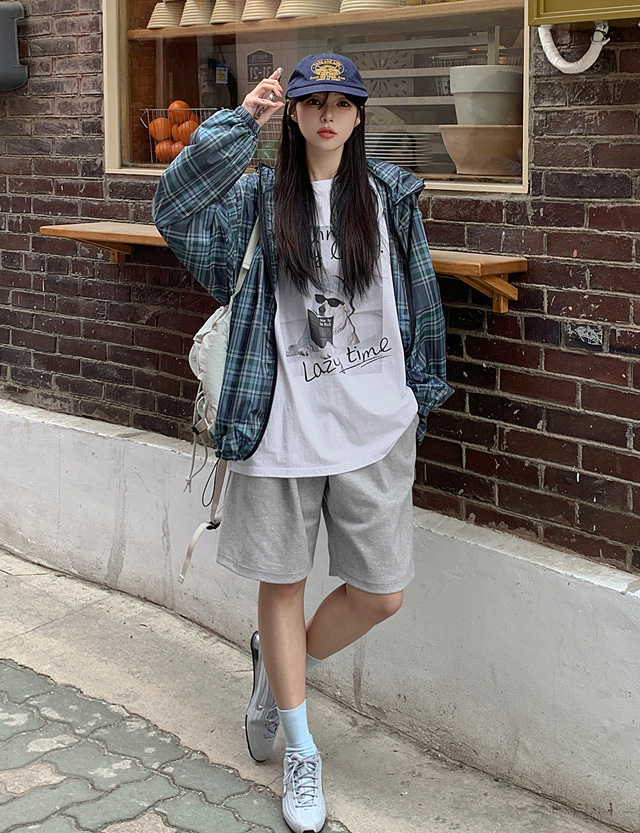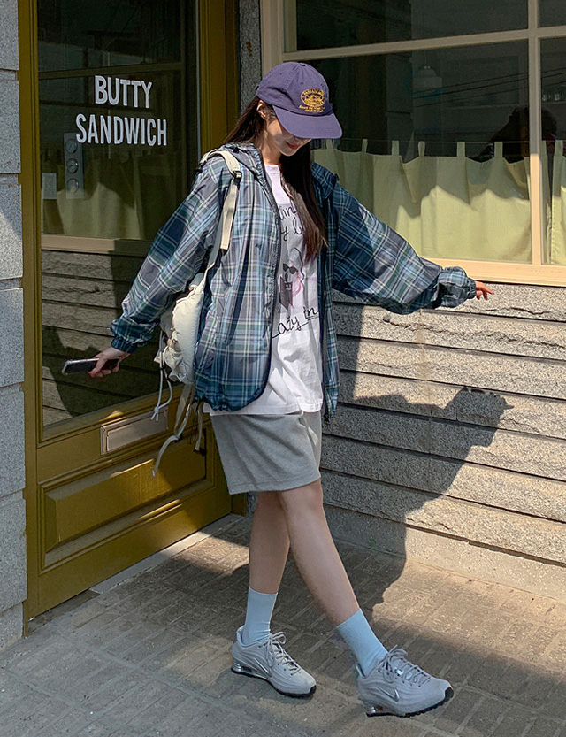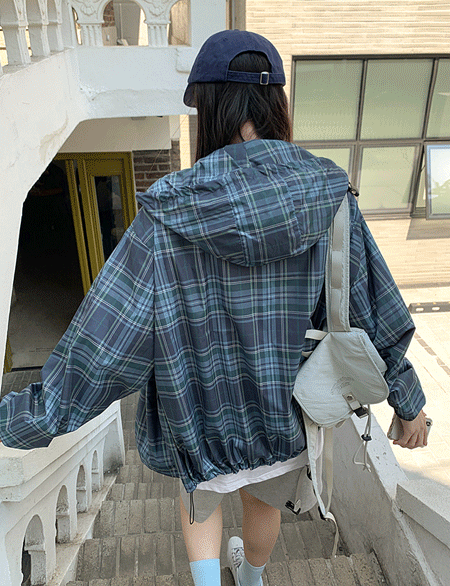 드쥬린 寬鬆 格紋 衛衣 拉鍊衛衣 87219