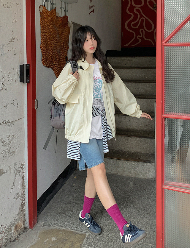 매일 入庫 싶은 밑단 鬆緊腰 領口 拉鏈外套 87254