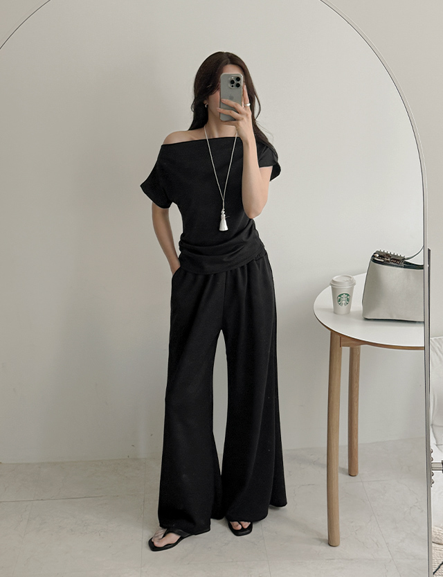 쉐딩핏 鬆緊腰 寬褲 87231