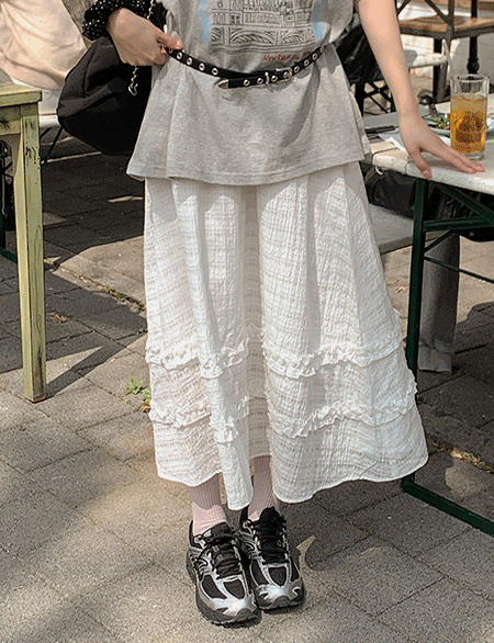 체크체크 褶皺 長款 鬆緊腰 裙 87252
