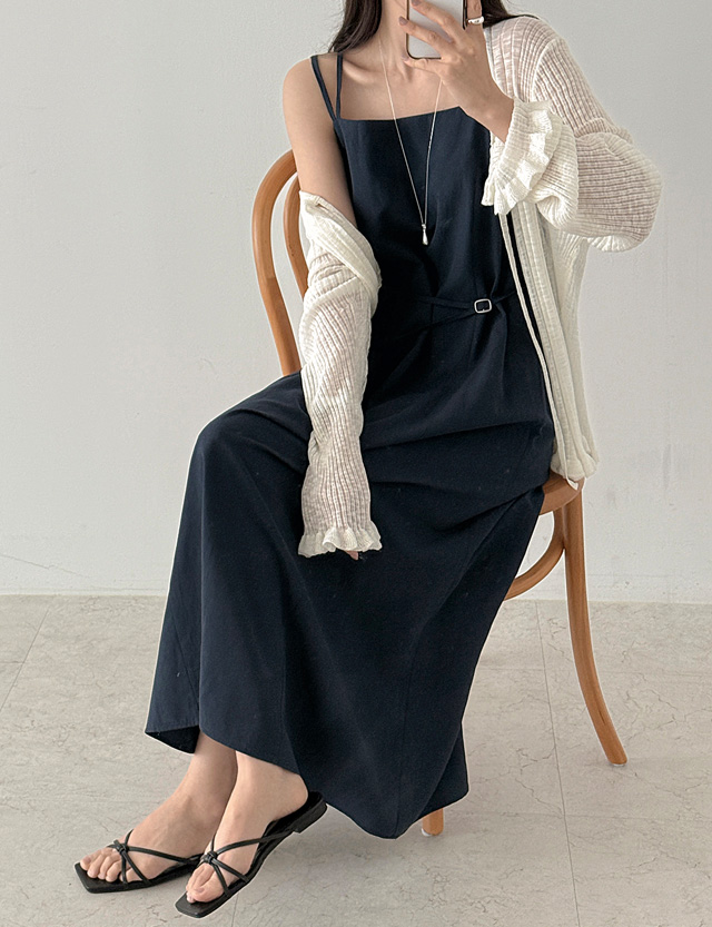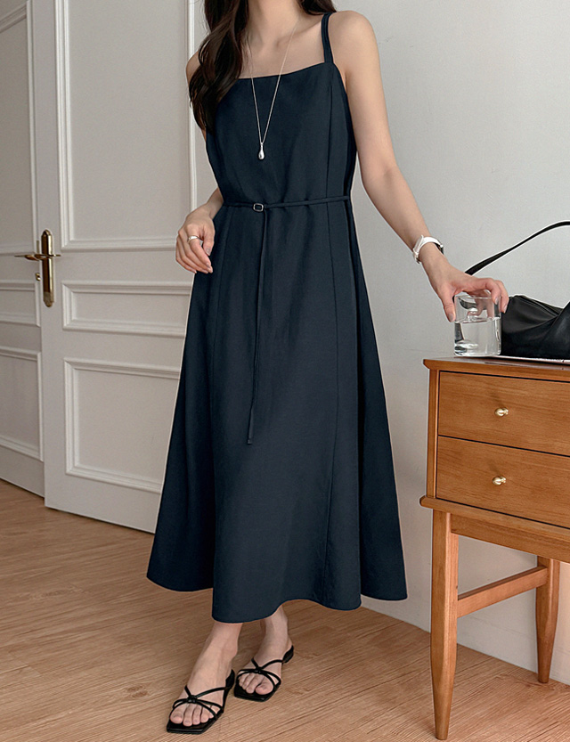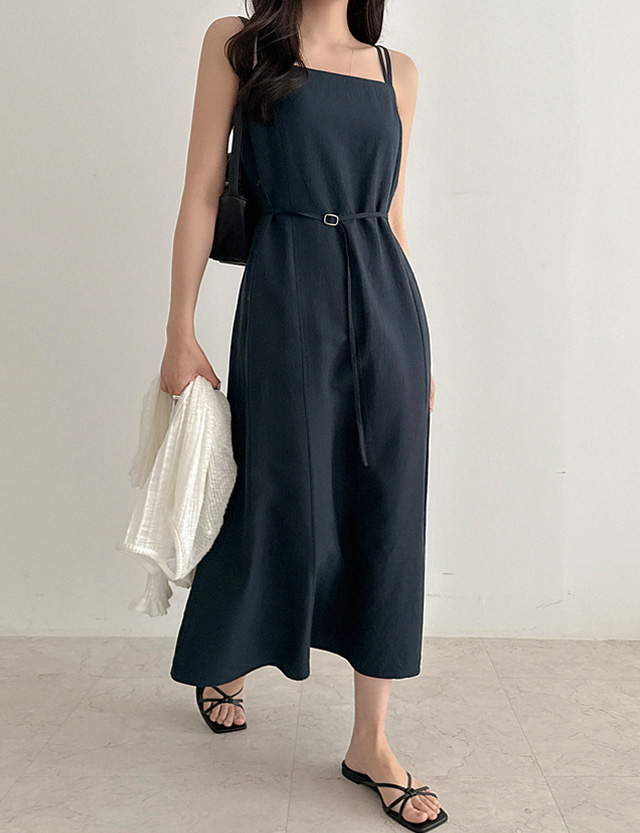 로에나 棉麻 束腰 背心 長款 洋裝 87223