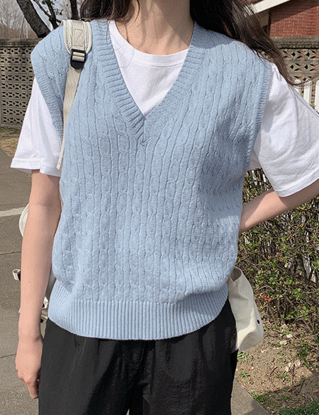 봄데이트로 즐기는 麻花型 寬鬆 針織 馬甲 87291