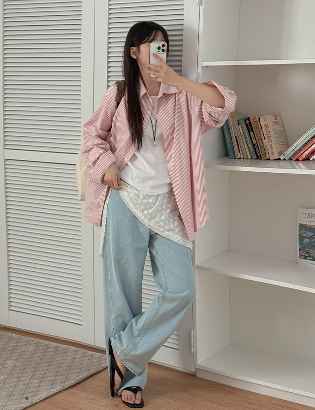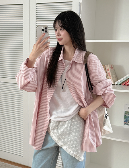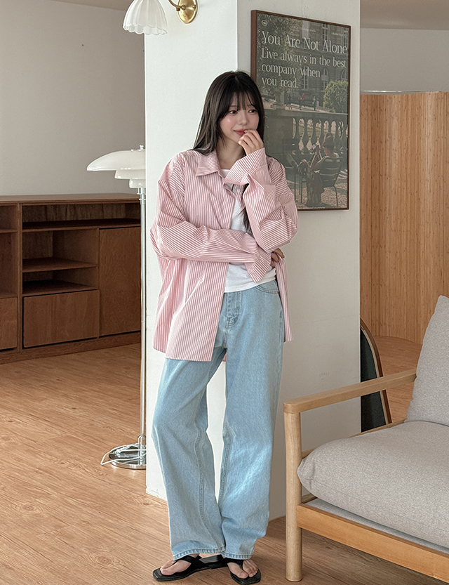 리아시 寬鬆 條紋 스프링 襯衫 87216