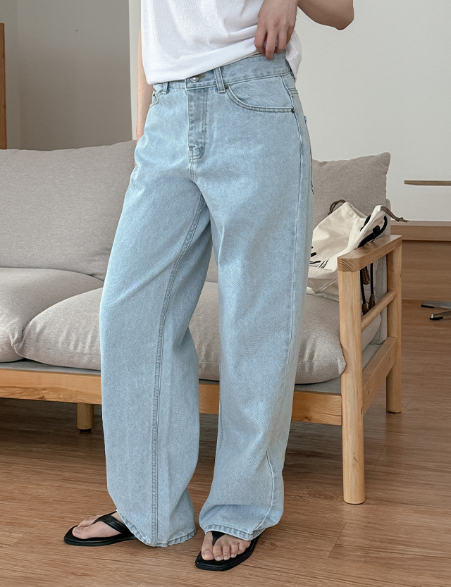 리엔트 寬 簡單 淺 牛仔 褲 87217