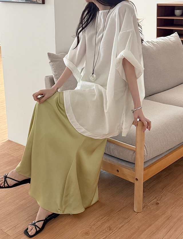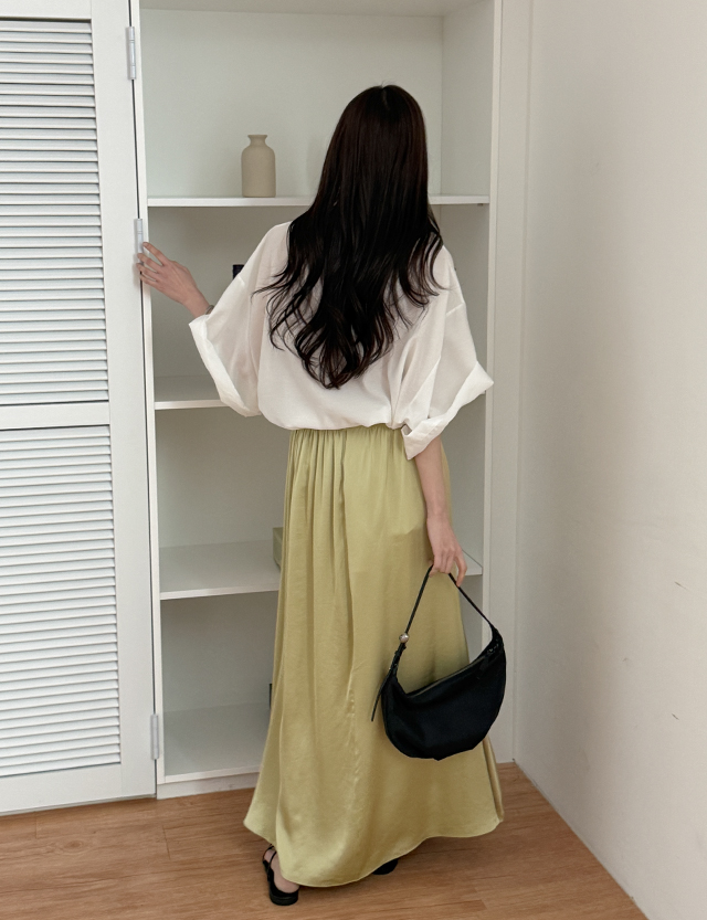 우아함의 끝판왕 鬆緊腰 緞面 맥시 長裙 87311