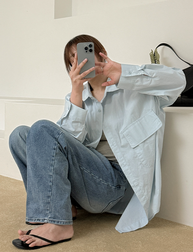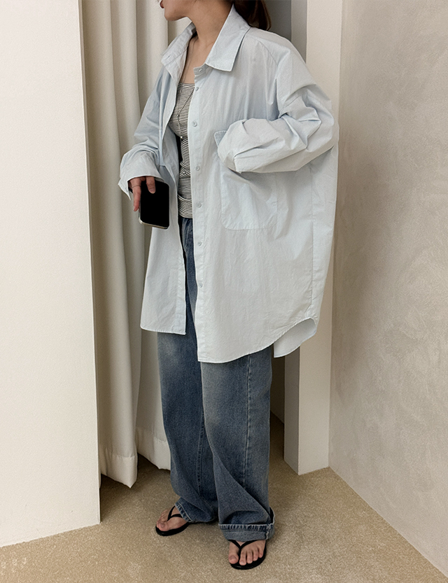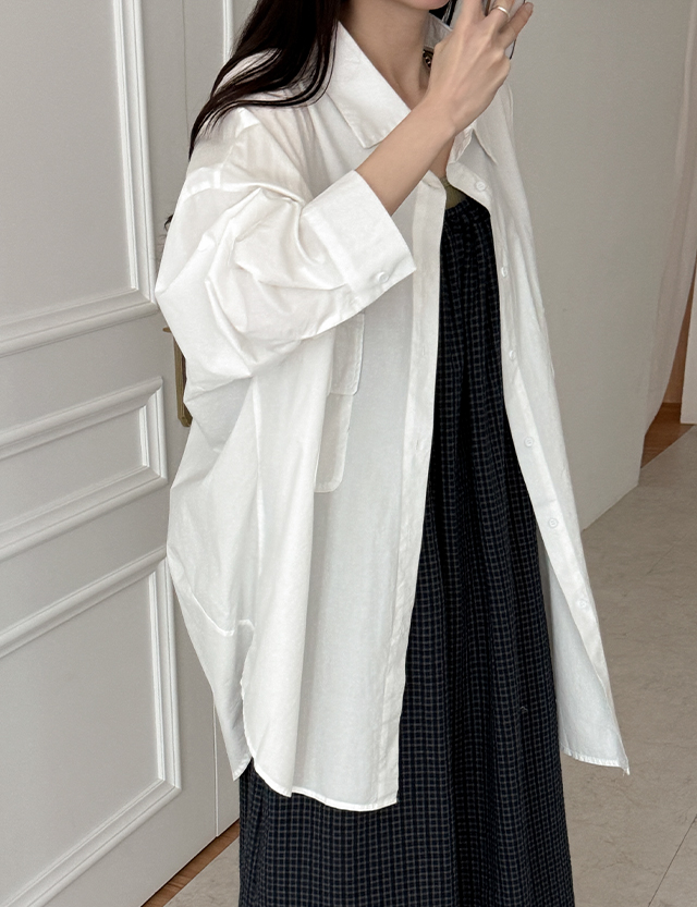 [09초이스] 여리하게 日常款 寬鬆 棉質 長款 襯衫 87486