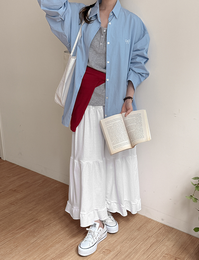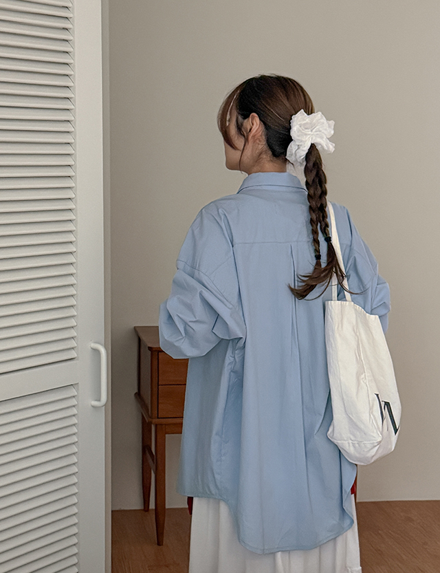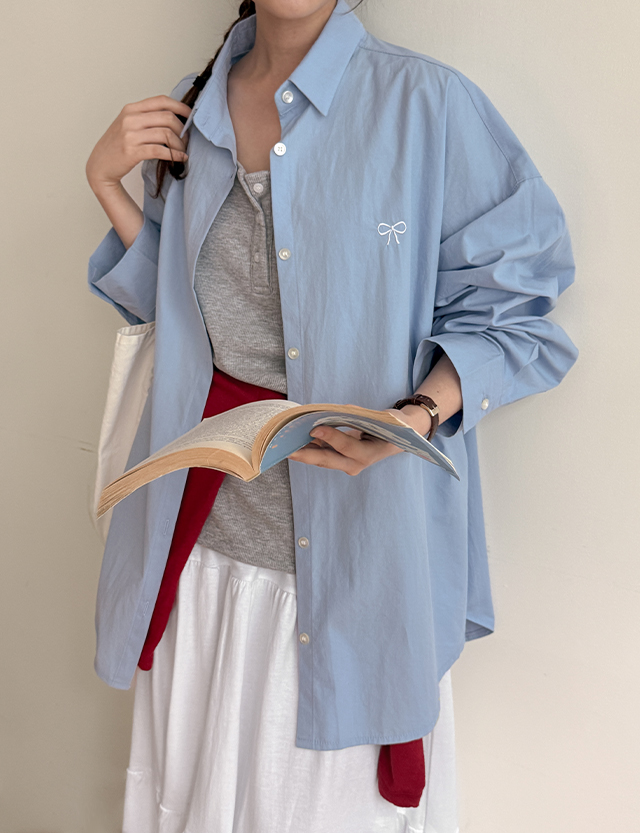 치드 리본자수 寬鬆 不規則 襯衫 87448
