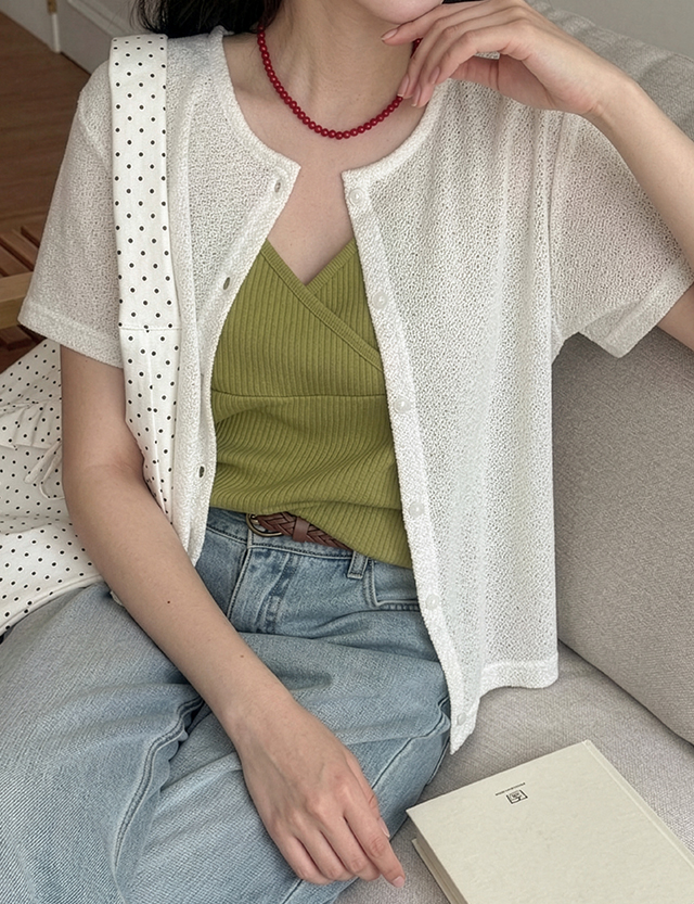 유어마린 短袖 棉麻 開襟外套 87496