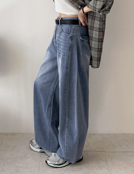 [2가지기장] 아웃커브 배럴핏 寬褲 87463