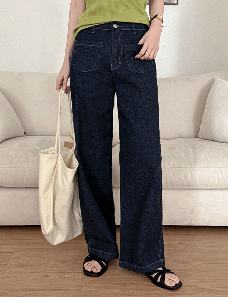 [3XL까지] 언텟 아웃포켓 속밴딩 세미와이드 쿨 牛仔 褲 87546