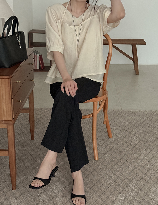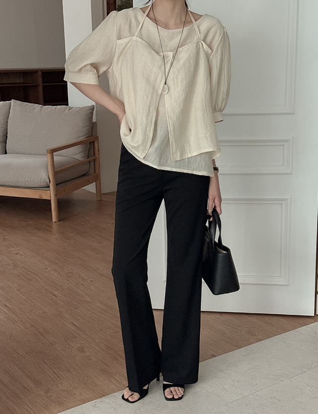 [2가지기장] 뮤에브 속밴딩 彈力 修身 喇叭 休閒長褲 87584