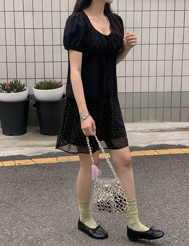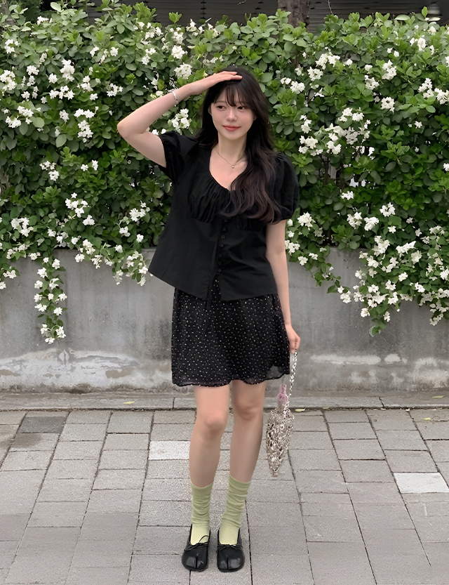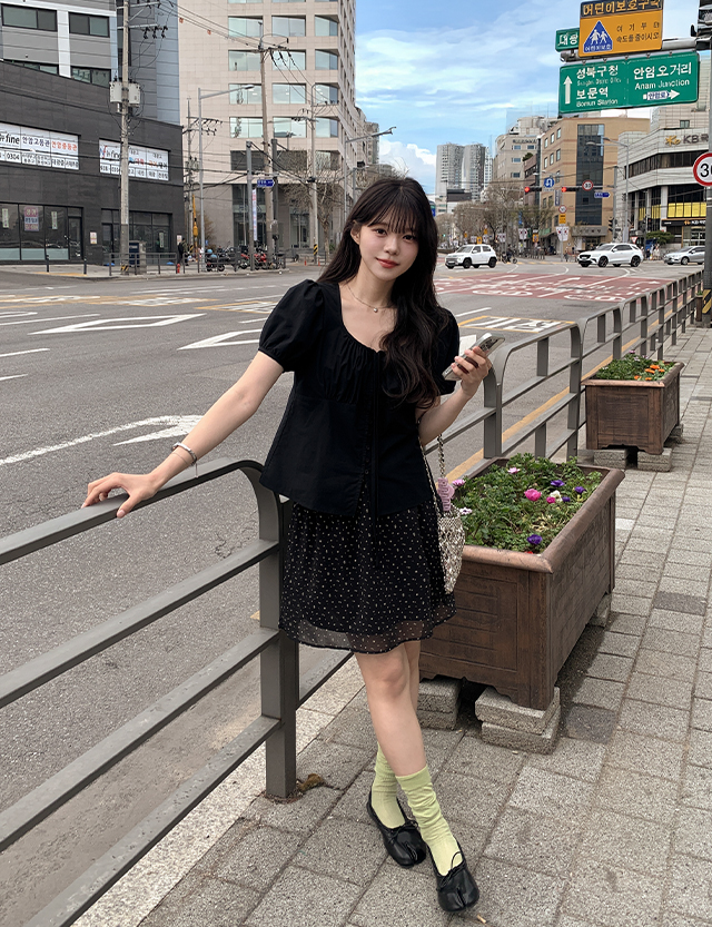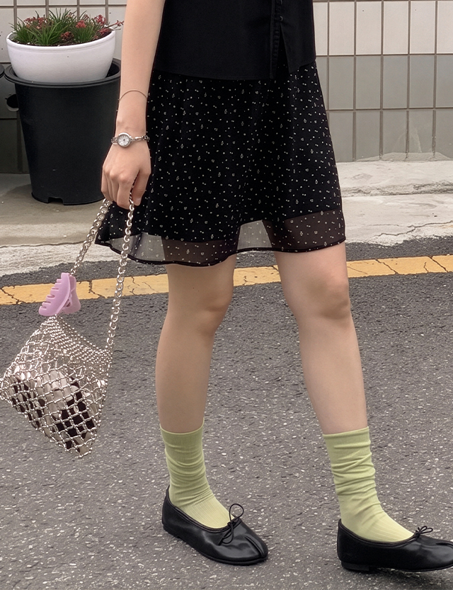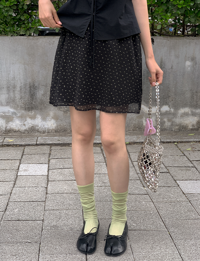 살랑살랑 碎花 鬆緊腰 真絲 裙 87429